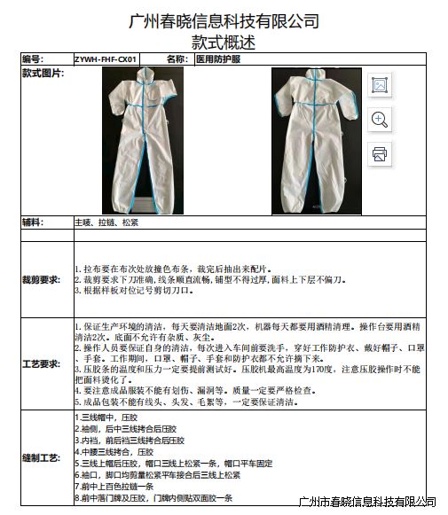 涵盖了整套防护服的生产工艺流程